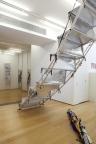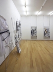 Sapountzis’s installations and performances combine elements of theatre, poetry and ritualistic practices, using the specific qualities of a medium to illicit greater interpretive possibilities. At the core of most of his projects are sculptural works that employ such flexible materials as aluminum sheets and rods, brightly colored fabric, pins, knots, strings, and newspaper. All these materials share certain qualities: they are light, flexible, ductile, their volumes can be reduced, they are easily transportable. The sculptures, in their carefully haphazard appearance, evoke a number of associations from banners carried at a protest to classic works of Modernism.(from gallery press)