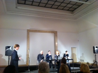 Last night at the Haus der Kunst, a very interesting discussion/analysis with Anri Sala; Bridget MacRae, solo cellist with the Münchener Kammerorchester [Munich Chamber Orchestra]; and Alexander Liebreich, artistic director of the Münchener Kammerorchester. Moderated by Patrizia Dander, curator of the installation “The Present Moment”.