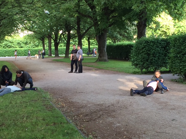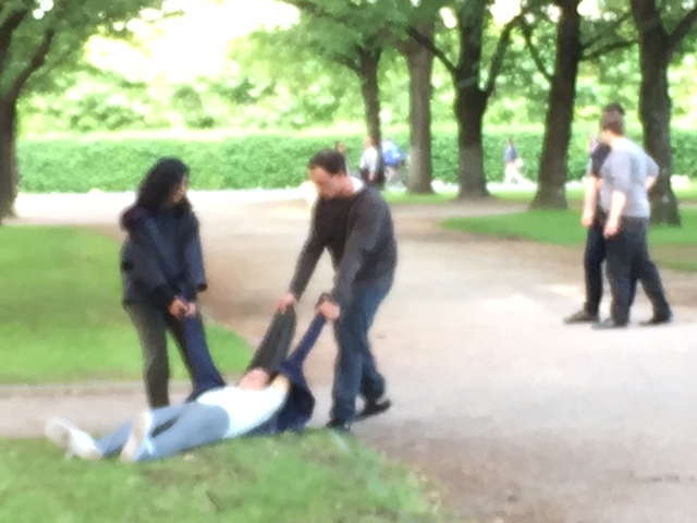 a performance by the artist Eglė Budvytytė took place in the garden. The performers/players worn ‘Mongolian Dragging Hoodies’. Produced together with fashion designer Andrea Kränzlin, the hoodies are inspired by attire worn by Mongolian fighters. Originally designed for practicality, the artist had these Hoodies specially-made to protect the heads, necks and shoulders of the performers in her piece Some were carried, some – dragged behind for Kunstverein München’s Akardendinner. Budvytytė has had each of the Hoodies – one of each of the performers – remade as a unique edition of 5.