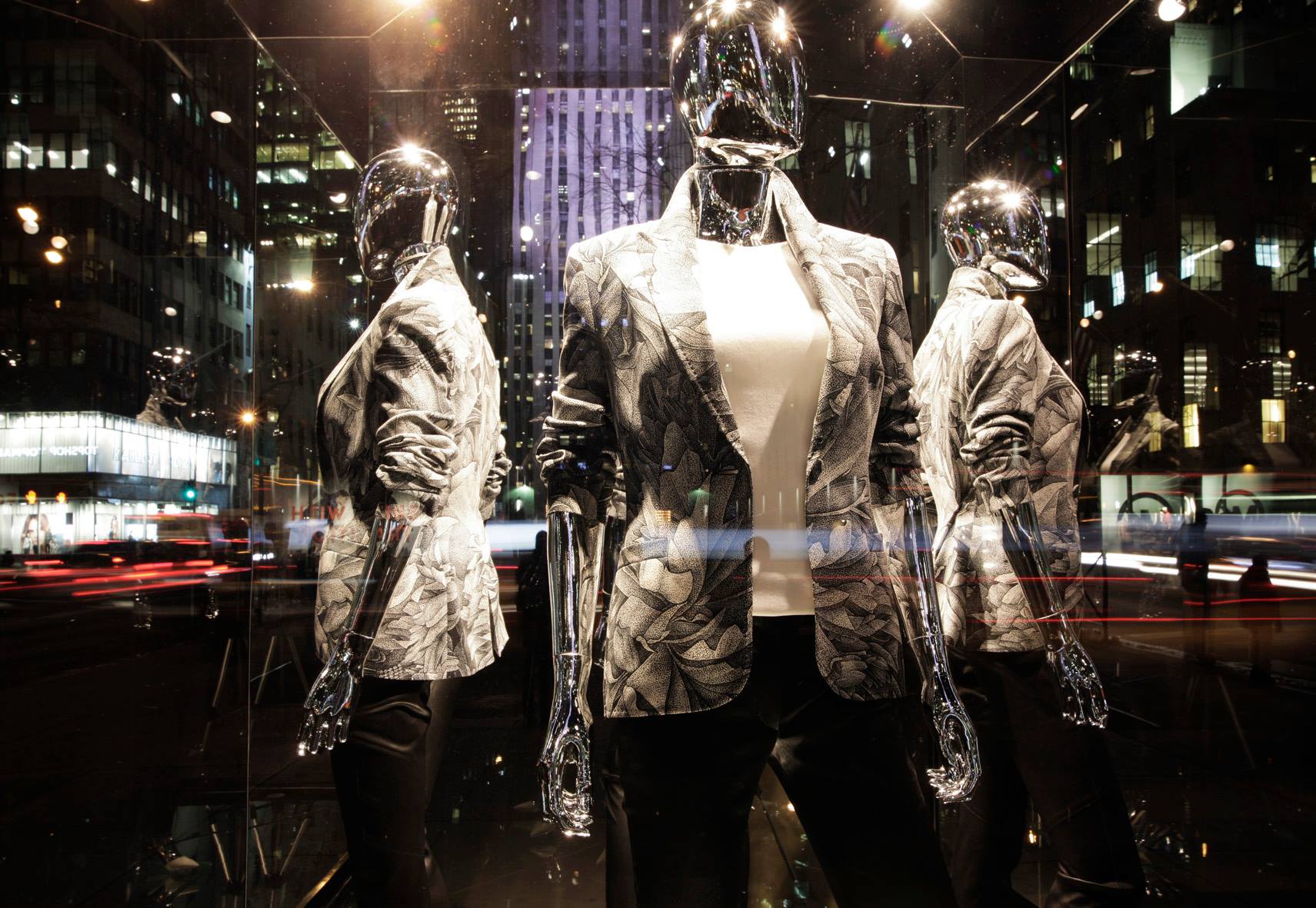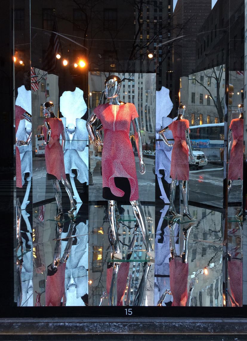 Window display at Saks Fifth Avenue New York: the cocktail dress of the ESCADA meets THILO WESTERMANN collection