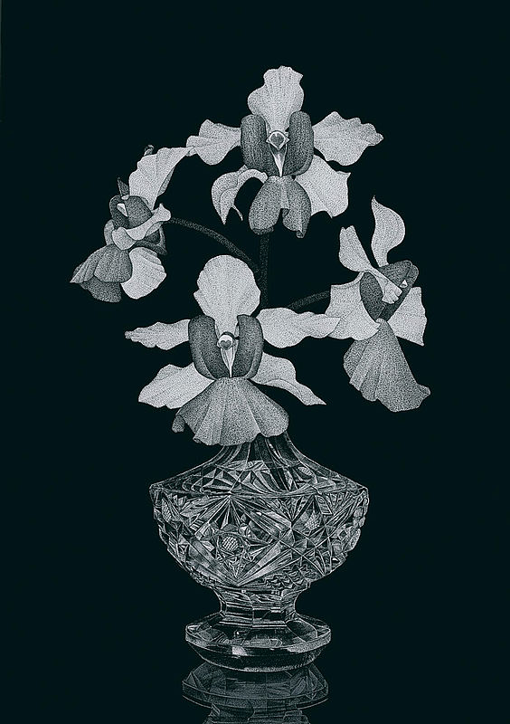 Flowers of almost supernatural perfection, arranged in exquisite crystal vases, captured in classical black and white – timeless elegance….he has entitled the series Vanitas, and he uses this term with a very careful precision.