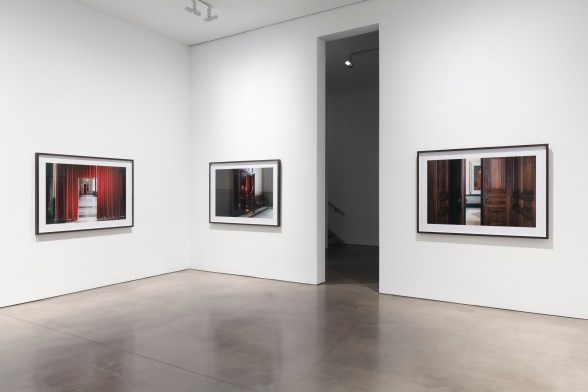 The exhibition includes a series of photographs, images of courthouse doorways….Carey Young in continuous analysis based on Before the Law, after Franz Kafka’s 1915 parable, which the protagonist is continuously denied access to ‘the law,’ depicts these doorways as metaphors for the legal system itself.