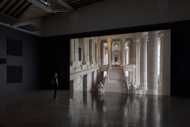 Installation view, Carey Young, Palais de Justice, 2017 single-channel HD video (from 4K); 16:9, color, quadrophonic sound;
