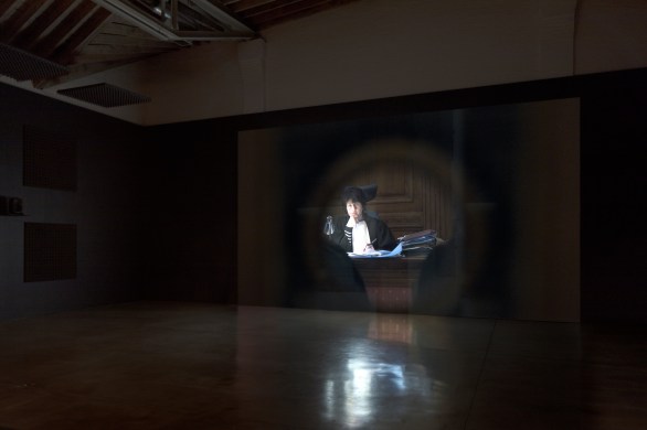 Installation view, Carey Young, Palais de Justice, 2017,single-channel HD video (from 4K); 16:9, color, quadrophonic sound;
