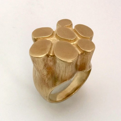 Karin Waisman Stem #3, 2017 Carved in wax and cast in gold 1”D x 7/8”W x1-1/8”H; photo ©Karin Waisman