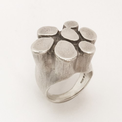 Karin Waisman, Stem #3, 2017 Carved in wax and cast in recycled silver 1”D x 7/8”W x1-1/8”H;photo ©Karin Waisman