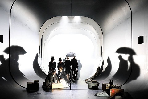 “Il Trittico is not only a showcase of some of Puccini’s best writing, but it can also be a showcase for a director who is unable to resist the temptation to try to link them at least thematically, since there is little common convergence of tone, period or character between the three short works. Lotte de Beer connects the three pieces in only the most abstract of ways for the new production in Munich. Each of the one-act operas remains in the period of its original setting, and plays out closely to the libretto, but each take place within the wide opening of what looks like a large tunnel. The concept behind this is something to do with time, connecting the past with the future, but it’s not something that makes a great impression or present the works in any new or revelatory way.” (Opera Journal, Puccini, Il Trittico, Munich 2017)