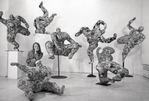Niki de Saint Phalle among her Nanas at the Galerie Alexandre Iolas, Paris, Autumn 1965. Photo: © André Morain, Copyright © 2007-2018 Niki Charitable Art Foundation